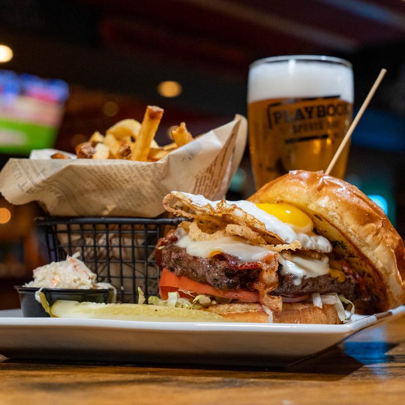 PLAYBOOK sports bar takes you to a whole new level, featuring 30 flat screen TVs, including a 100 LCD Display behind the main bar, luxury booths, 2 bars, custom beer display, and floor to ceiling doors.